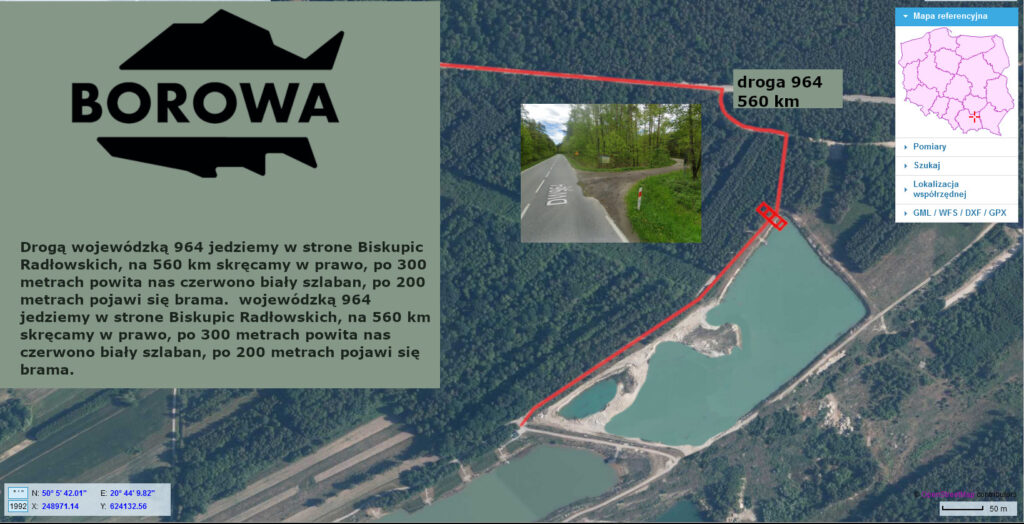 BOROWA to obszar rekreacyjny w Borzęcinie, woj. małopolskie, przy trasie DW964 blisko Szczurowej. Znajdują się tu lasy radłowskie oraz dwa zbiorniki wodne na 20ha terenu. Łowisko oferuje 11 stanowisk wędkarskich, w tym VIP z domkiem dla 3 osób, a także wygodne udogodnienia takie jak sanitariat i monitoring obiektu.
